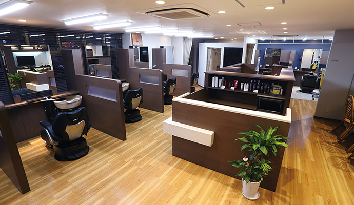 新規集客のために新聞折込やポスティングを行いました。ターゲットや配布地域を絞り一定周期で一年間新聞折込を継続。店舗周辺の会社にもスタッフを連れて挨拶回りを実施。また、ホームページにネット予約システムも導入しました。今では多い月で新規のお客様が80〜90名いらっしゃいます。スタッフ全員で苦労して新規集客をしてきたので、スタッフの意識も変わり、“お客様をさせていただいている”という感謝の気持ちが培われ、今では新規のお客様すべてをスタッフに任せられるようになりました。比較的経験の浅いスタッフも接客機会が増えることでスキルが向上し、それに伴いお客様が定着、同時にスタッフの生産性も上がる好循環に結びついていると感じています。