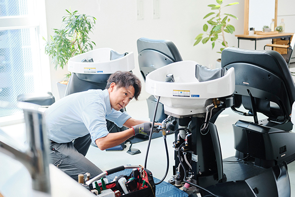 ご利用の機器にタカラベルモントのロゴマークがあれば、どうぞ安心して、長くお使いください。いつもあたりまえのようにサロンワークをつづけられて、万が一故障をしてもすぐに対応ができるように専門のカスタマーサポートチームをご用意しています。メンテナンスが必要な場合には、サービススタッフが全国どこへでも駆けつけます。