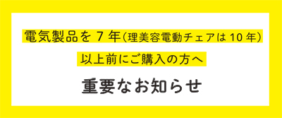 弊社の業務用理美容機器は製品カテゴリー毎に「標準使用期間」を規定させていただいております。