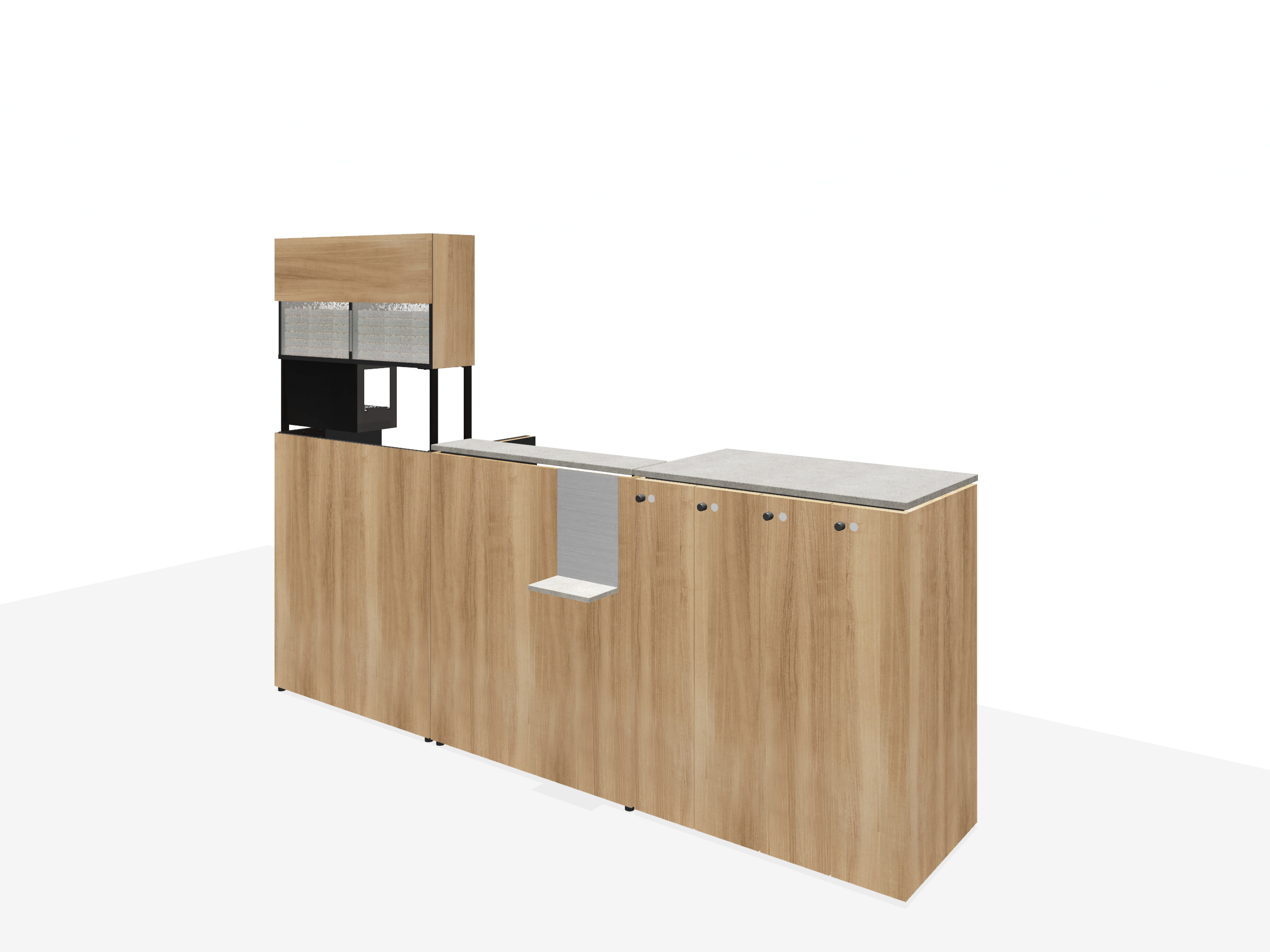 天板は店販スペースとして活用でき、商品を手に取れる高さで効果的にアピールできます。 -