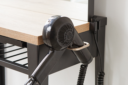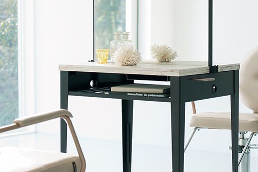 どんな空間にも合うベーシックな作りに、引き出し式のテーブルなど、快適性を考慮した機能を搭載。天板やミラー面数 も選択可能な、汎用性の高いモデルです。