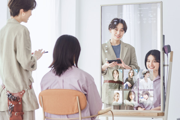 つづく。施術後のスタイル履歴やミラーに表示されたおすすめ情報などをお客様のスマホに自動連携。