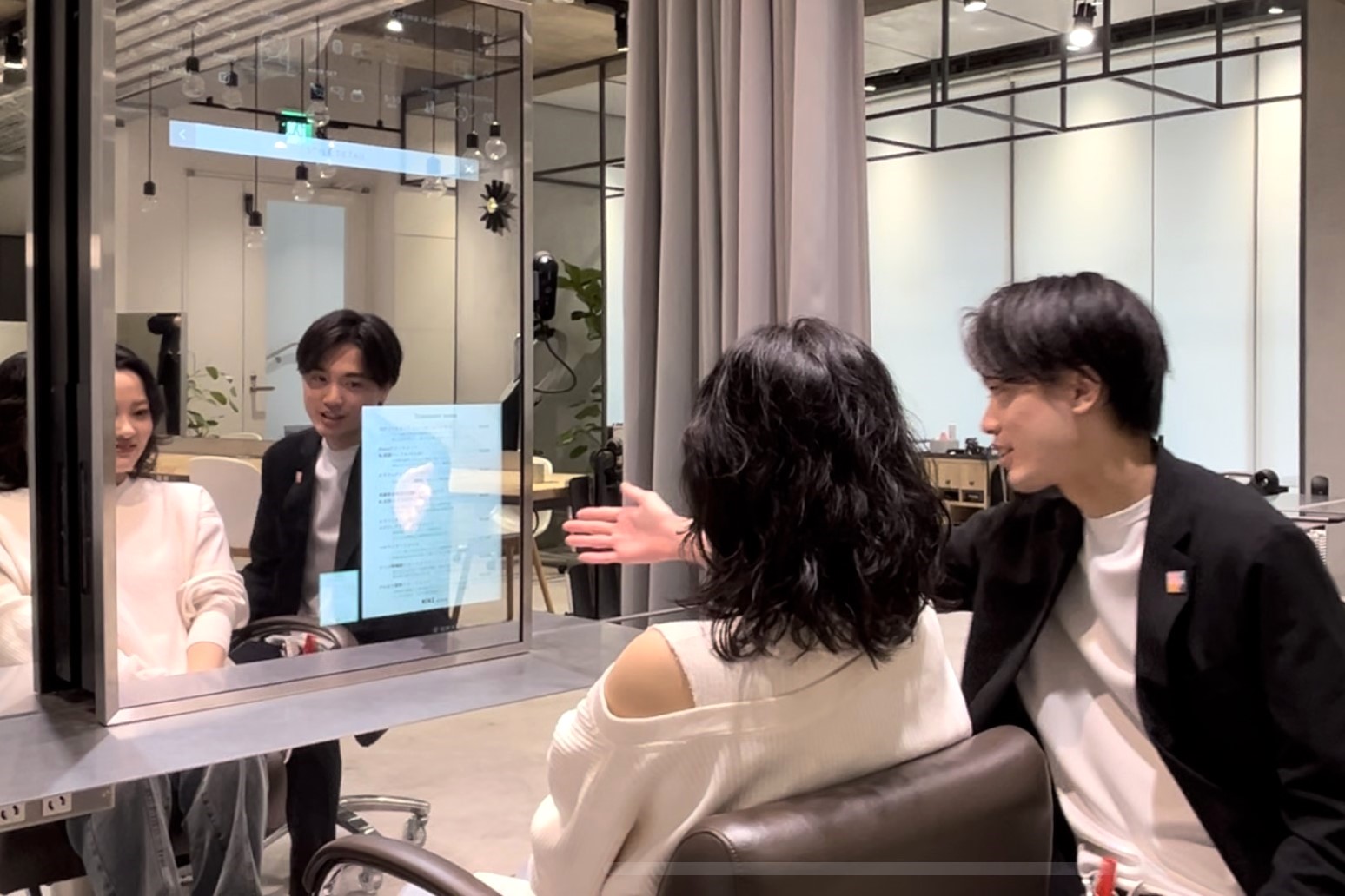 「事前に答えてもらったアンケート結果が鏡の上部に表示されることでお客様と会話をする前からなりたいイメージやお悩みが分かるので、商品アプローチの戦略が立てやすくなりました。カラー剤の塗布中や放置中にお悩みにフィットした商品のバナーを流しておけば自然と目に入って『この商品って何ですか?』とお客様から商品の話題になるんです。一方的な提案ではなく、あくまでお客様の関心から会話がはじまるので、購入にもつながりやすいですね」