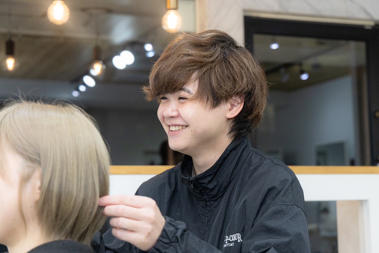 「もともと違うサロンにいて、縮毛矯正の技術を身につけたいと考えていました。鷹山さんの縮毛矯正は県内でもトップクラスだと耳にしていて、ここで技術を磨きたいと思って入社しました。」(丹藤さん)