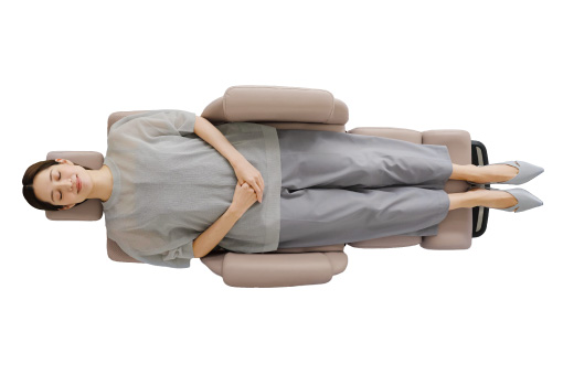 背もたれから優しい風を送り出すコンフォートエアによって、背中にまるで空気の層があるような心地よさを。施術中の移動がない定点サービスにおいて、居心地のよさに貢献する機能です。
