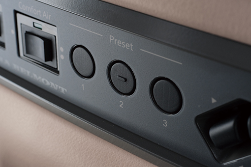 便利なプリセットボタンを3つご用意。シャンプー、フェイシャルケア、ハンドケアなど、メニューごとにお好きなポジションをあらかじめ設定しておけば、ワンタッチで設定ポジションに移行します。
