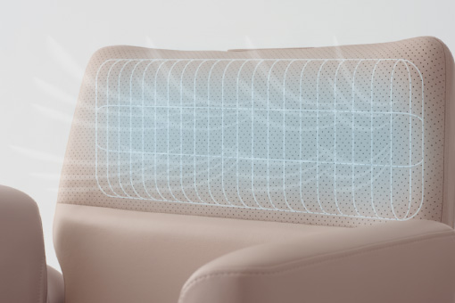 座りつづけるからこそ、背もたれから送られる風は嬉しい気遣い。