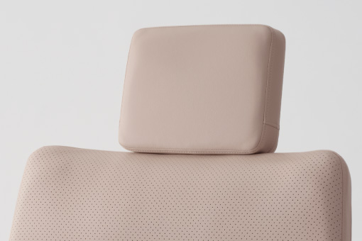 背もたれに差し込むだけで手早くセット可能。お客さまを自然に寝姿勢へと誘導できます。使用しないときはチェア側面にすっきり収まり、空間を美しく保ちます。