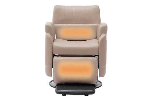 レッグレスト部にヒーターを内蔵。ヘッドスパやフェイシャルケアなどを行う寝姿勢時に、足元を温め、くつろぎ感を高めます。