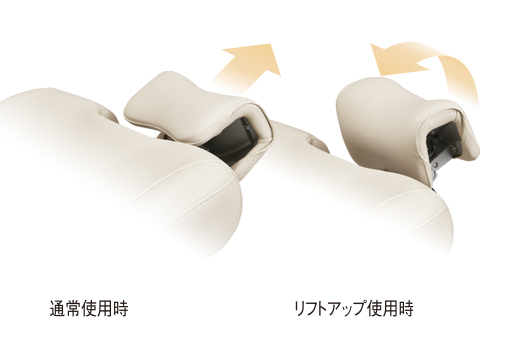 90°回転のリフトアップ機構により枕の高さが変わります。加えて、ゆるやかにカーブした枕の形状により、お客様の首や頭の形状に沿った自然な体勢での寝姿勢を実現しました。