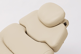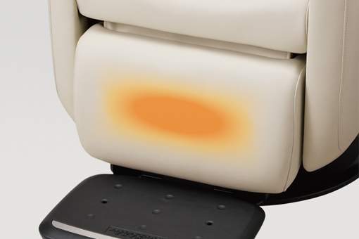 レッグレスト部にヒーターを内蔵。ヘッドスパやフェイシャルケアなどを行う寝姿勢時に、足元をあたため、くつろぎ感を高めます。