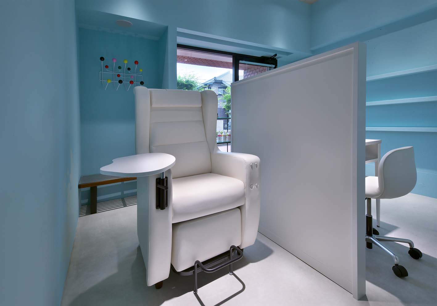「お客様も技術者もより快適」を目指したネイルチェア。リクライニング機能の無い、ハンドとフットネイルに特化したチェア。快適性にこだわったソファのような座り心地。
