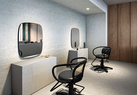曲線で構成されているため、施術時にお客様に無理なく近づくことができます。コンパクトなサイズ感でありながらサイドが抜けているため、座ったときに窮屈さを感じにくく、さまざまな雰囲気の空間に調和します。