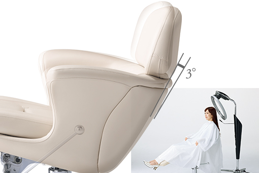 カット等の施術を行う標準ポジションと、ウェイティングやプロセスタイムに適したリラックスポジションの2ポジションを設定。さまざまなシーンにおける最上の快適性を、お客様へお届けします。