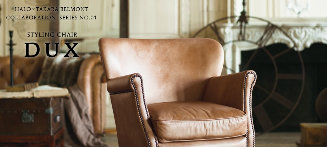 ヴィンテージの薫り高き英国家具ブランドHALOとのコラボレーションシリーズ。英国のアンティークチェアをモチーフに、2種類のレザーをセレクトした存在感あるフラッグシップモデル。上質なアンティーク空間を演出します。