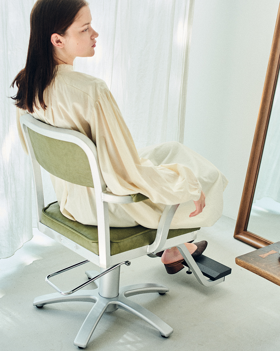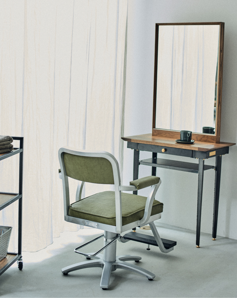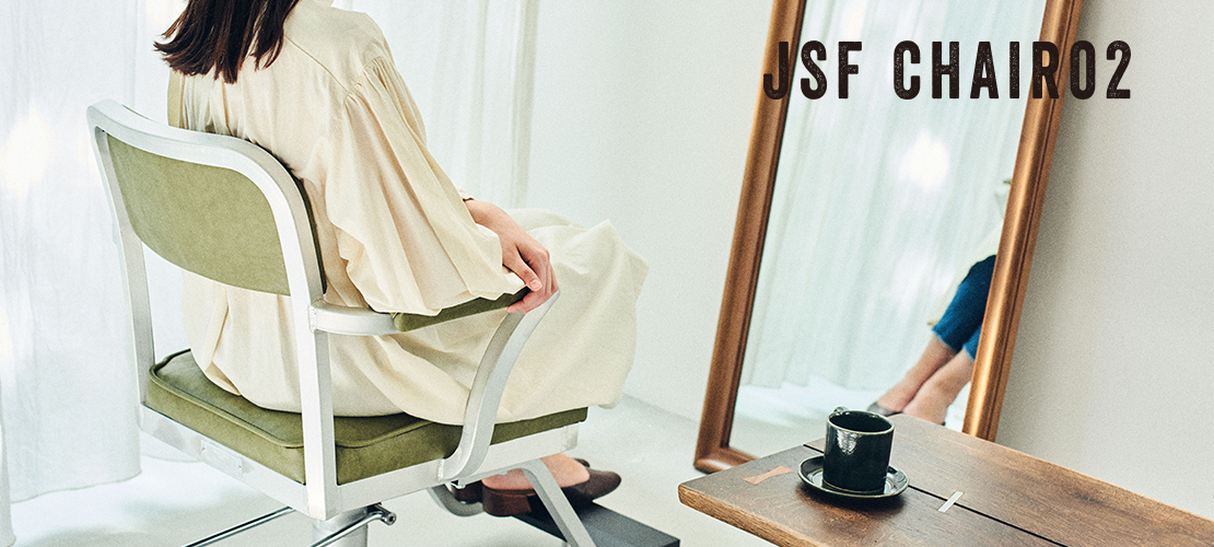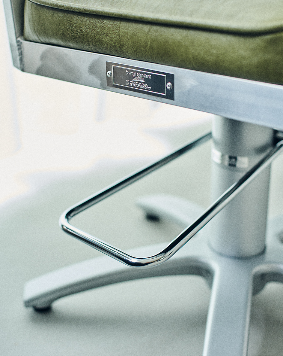 journal standard Furnitureとのコラボレーションシリーズ。ミニマルな形状でありながら、アルミ素材の質感が存在感を放つアメリカのダイナーを想起させるモデル。アルミのフレームとヴィンテージ風のレザーが、懐かしさと温かさ、そして新しさをもたらす。