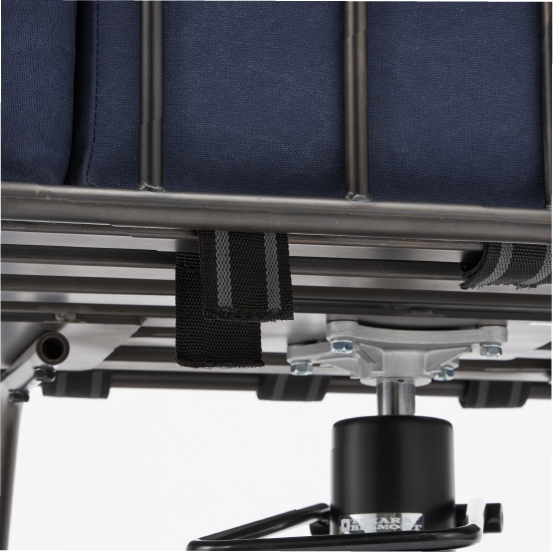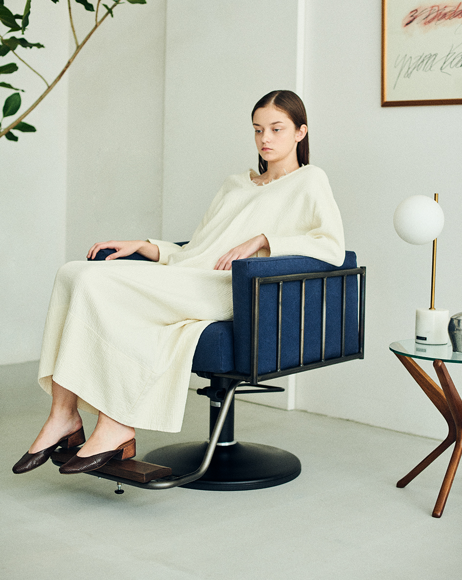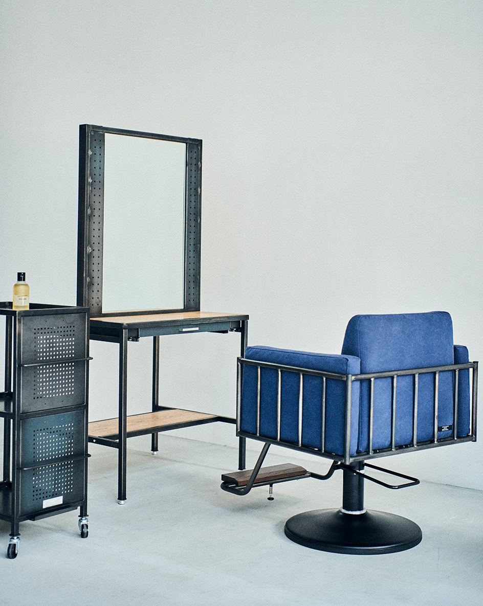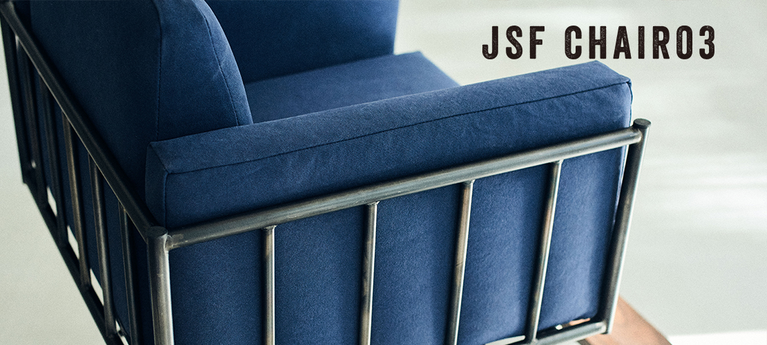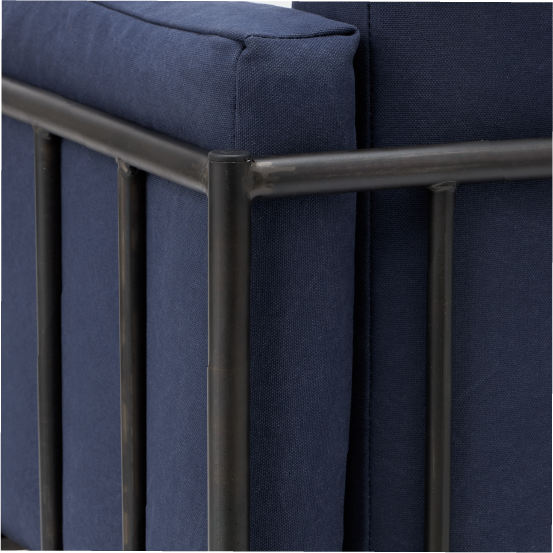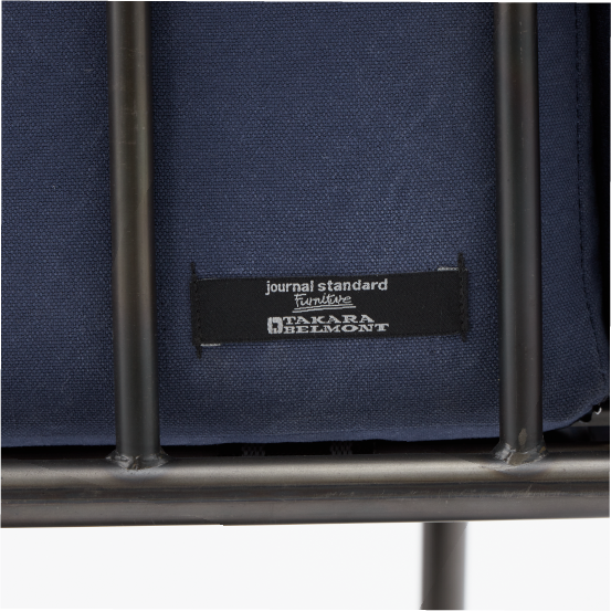 アイアンとファブリックの異素材の組み合わせによって生まれる独特の世界が感じられるモデル。ワイドな座面と安定感のあるアイアンフレームが包み込むような座り心地を生み出す。ネイビーとアーミーのミリタリー調ファブリックと、ヴィンテージ風のダークブランレザーの3 色展開。クッションカバーの着せ替え可能。