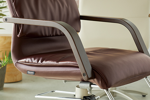 弓なり形状の背もたれに加えダブルクッションとギャザーがより良く身体に馴染み長時間の着座を快適にします。