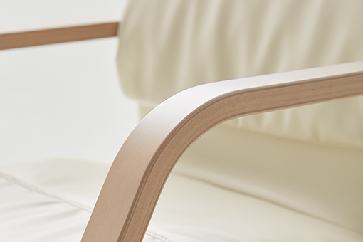 密度の異なるクッションを重ね合わせ使用することで、座り心地を緻密にコントロール。柔らかさの中にも芯のある座り心地を実現しています。