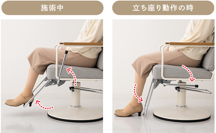 ※こちらのチェアを既にサロンでお使いの場合は、可動式ステップ単体をご購入いただくことで後付けが可能です。