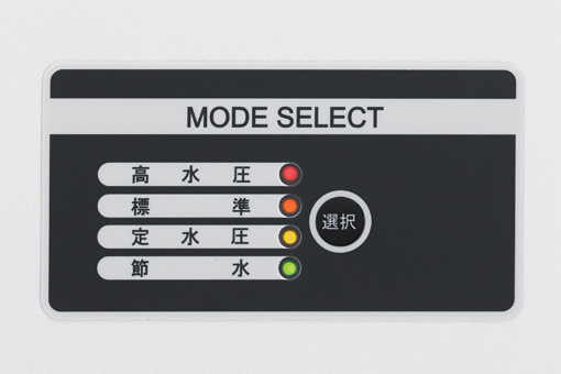 高水圧から節水まで4段階で出湯圧力を切替できます。