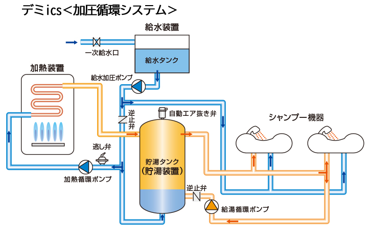 ■水圧モードセレクトにより、ご希望の水圧で長時間の同時出湯に対応