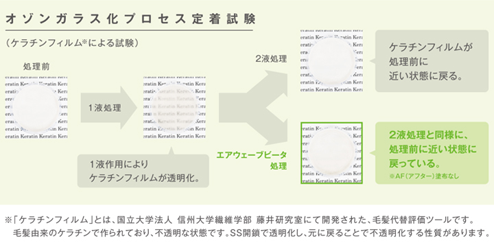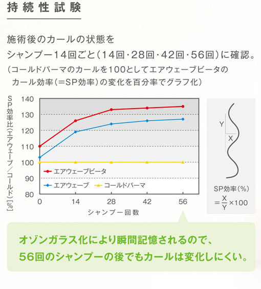 エアウェーブビータシステムとはブロム酸に多くを頼らずオゾンの力とビタミンC*の連携を加えたオゾンガラス化でカール形状を“瞬間記憶”するシステム。