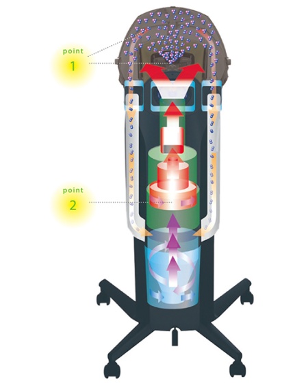 オゾンを含んだ空気が「専用ロッド」の孔から余分な水分と共に吸引される過程で効率よくオゾンが髪に均一に働きます。