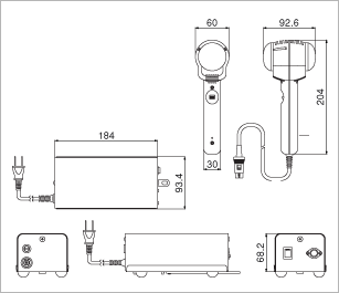 - 電源ボックスW184×D93.4×H68.2(mm) / ハンドピースW92.6×D60×H204(mm)