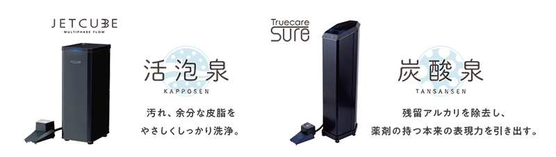 MPF※発生装置「JETCUBE」が生み出す大小の泡を湯水に含ませた吐水のこと。髪や地肌をいたわりながらしっかりと洗浄します。