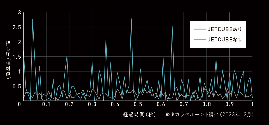 JETCUBEは、毎分1000回転以上のコンプレッサーで加圧した圧縮空気を湯水に注入・撹拌し、通常の吐水では実現できない貫通力と脈動感を与えます。