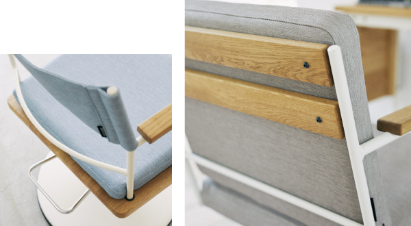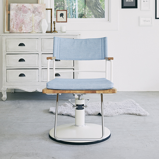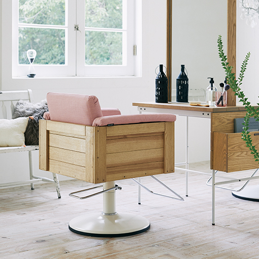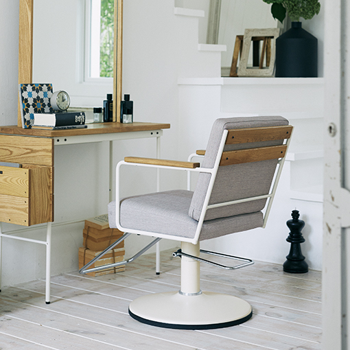 塩ビ素材ながら、ファブリック特有の素朴な風合いを再現したレザーを新作。サロンワークに適した清掃性や耐久性と、柔らかな風合いや色味を両立させた自信作です。