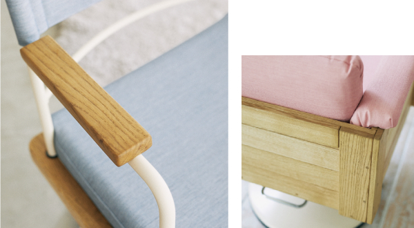 フィニッシュに薄い色のオイルステインを採用。木そのものの色味や木目の様々な表情を引き出し、個体差を楽しめる仕上げです。