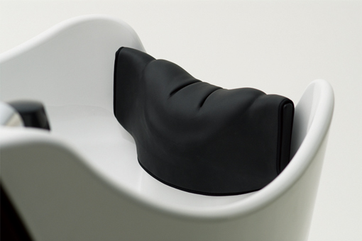 ワイドで厚みのあるジェルクッション付きのネックデバイスを「Minon」専用に開発しました。首にかかる負担を分散するとともに、安定感も増していっそう快適な寝心地に。また、施術者にとってもシャンプーワークに支障のない形を実現しました。着脱式ですから、お手入れも簡単です。