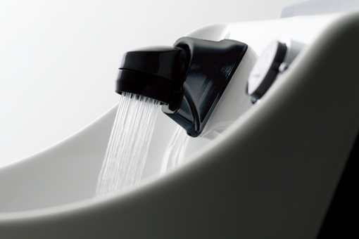 サイドシャンプーの大きな魅力は水圧シャワーによる爽快感。水や泡の飛び散りを気にせず、お客さまに高い満足感をご提供できます。