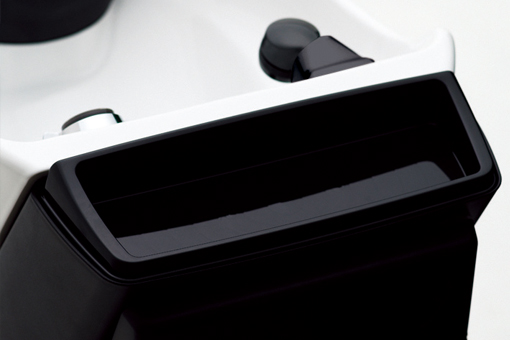 施術に必要なボウル幅(内寸)はそのままに、ボウルのサイドラインをシャープにし、よりお客さまに近いポジションで施術できるようにしました。反対側の耳裏もラクに洗えます。