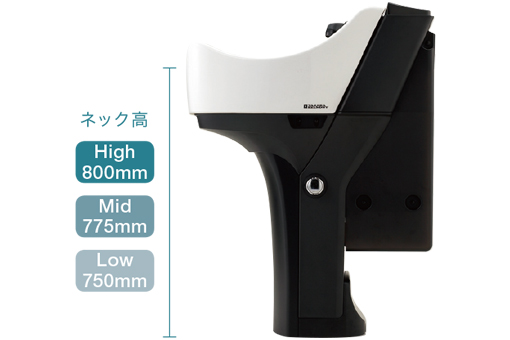 750mm、775mm、800mmの3タイプから施術しやすいネック高をお選びいただけます。スタッフの身長などを考慮し、発注時にご指定ください。