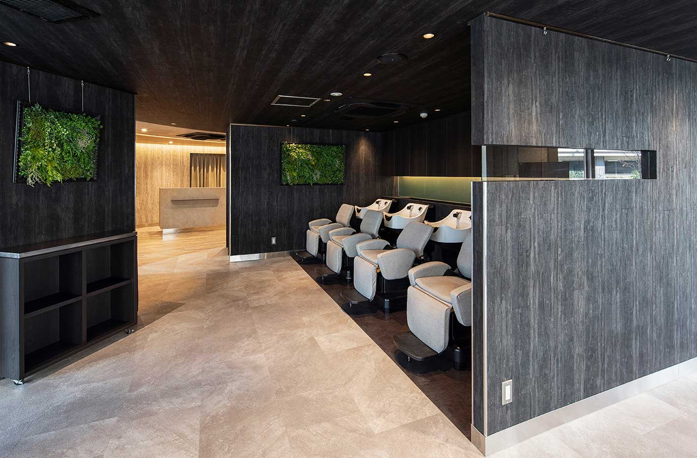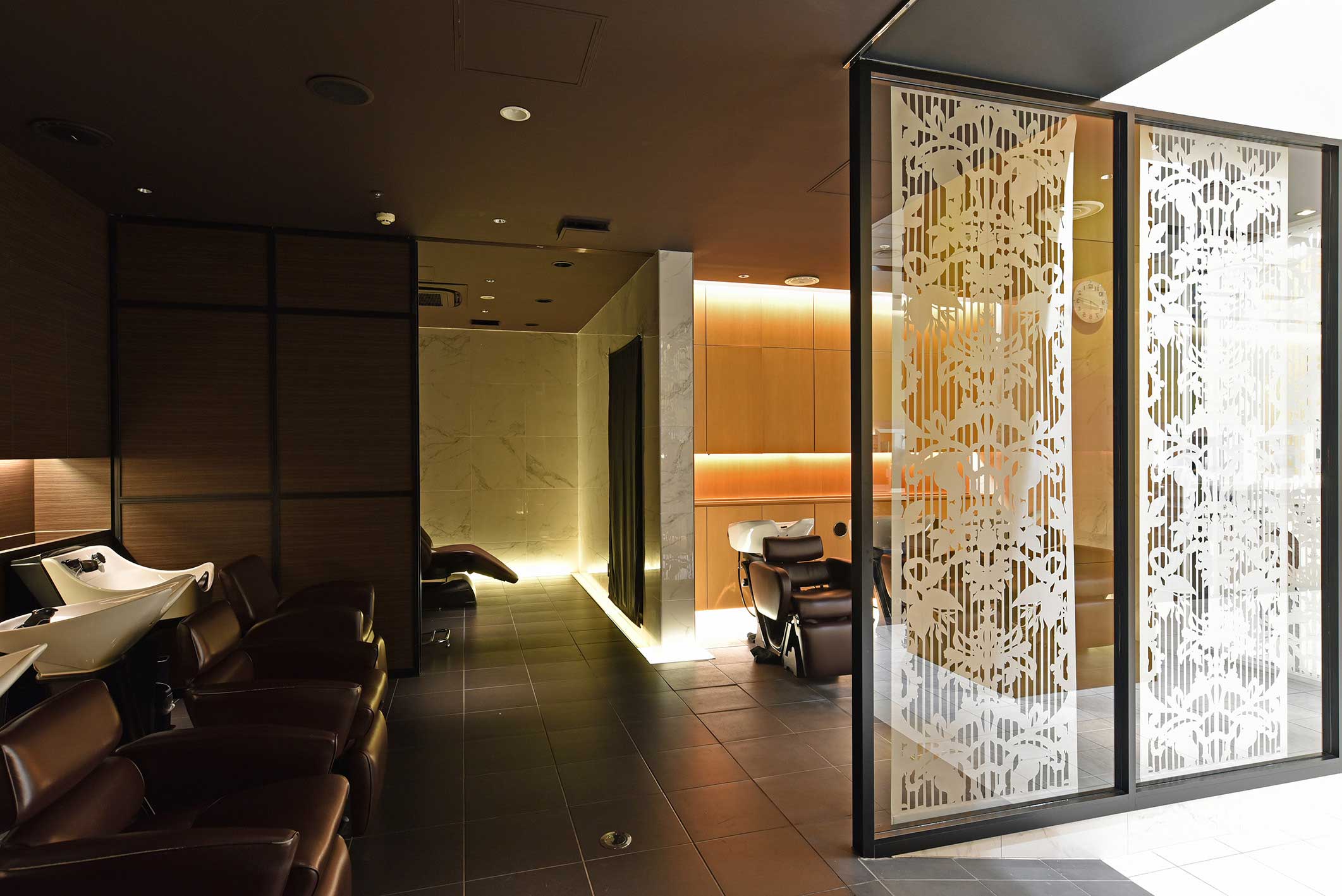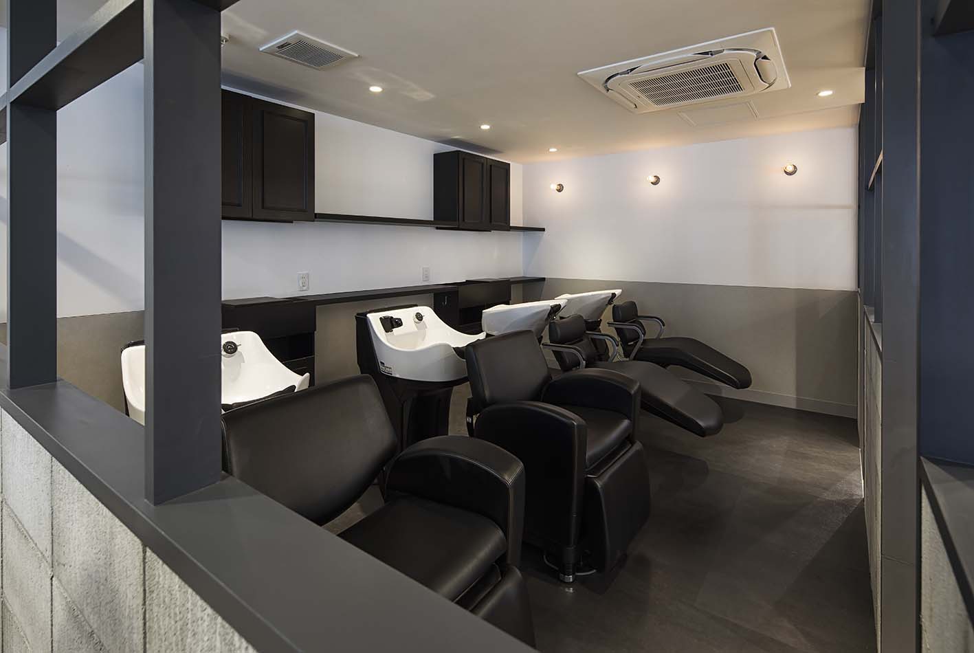 施術しやすい広々としたボウル。また、ロングヘアでもラクに洗えるよう深さも十分にとりました。お客さまの頭から遠く、深い位置に排水口をレイアウトすることで髪の吸い込みを抑えるよう工夫しました。