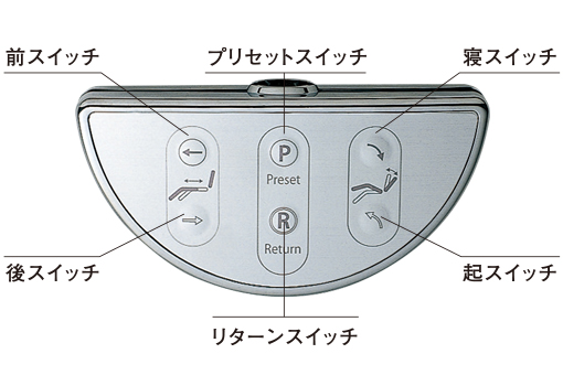 シンプルオペレーションを実現する「操作」パネル。設置位置は、チェアサイドの右と左、お好みでお選びいただけます。(写真は左サイド設置の場合)