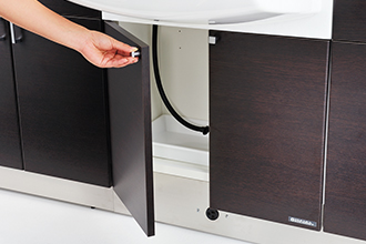 毎日の点検がしやすく水受けトレーの出し入れも容易なメンテナンス扉。