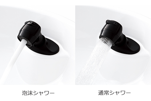 勢いのあるシャワーと、リアシャンプー時に水はねしにくい泡沫シャワーの切替が手元で可能です。