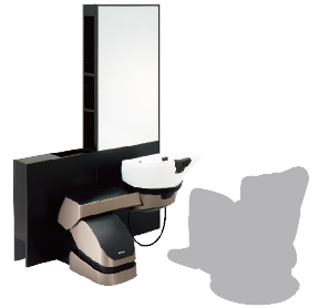 シャンプーボウルが電動で前後に移動することで、1台のシャンプー機器でフロントシャンプーとリアシャンプーの両方ができるハイブリッドシャンプー機器です。