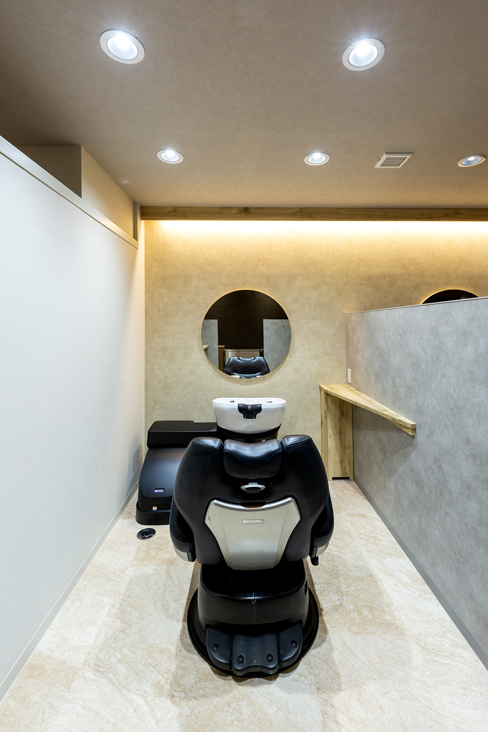 リアシャンプー時にも効率よく洗え、本格的なヘッドスパメニューやケアメニュー、カラー、パーマへも十分対応できます。