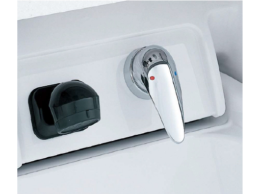 手軽に湯温・湯量の調整ができる1コック式水栓を採用。メッキ塗装でデザイン性もアップ。