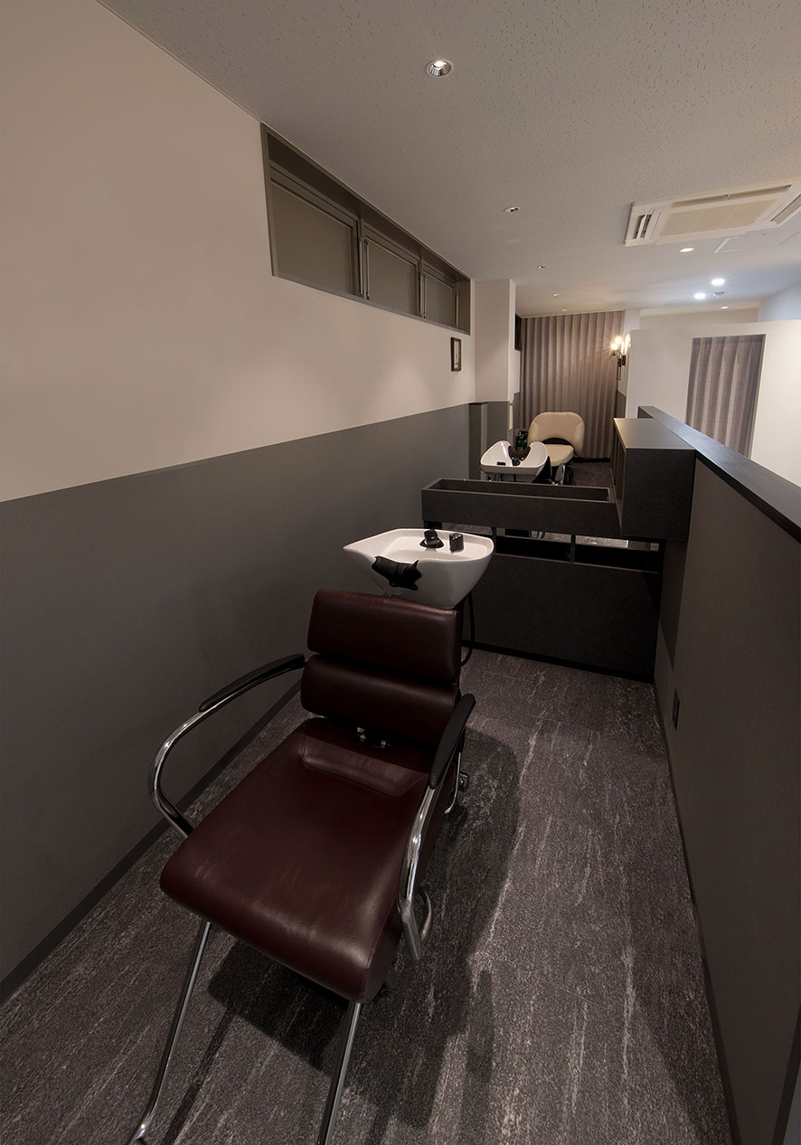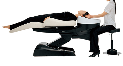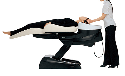 お客様はもちろん、スタッフもラクな姿勢で作業できます。本格的なヘッドスパなど長時間のリラクゼ-ションメニューの施術に最適の“YUME SHAMPOO”ポジションです。