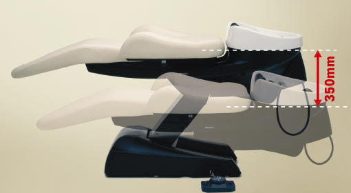 昇降レンジはシート高さ480~830mm。小柄な人も背の高い人も、自分の背丈に合わせ自在に高さ調節ができ、スタッフがいちばんラクなポジションで施術が行えます。