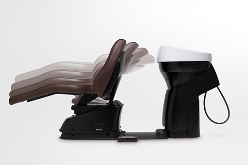 昇降と寝起こしが連動するシンプルな機構により、シャンプーポジションまで、より快適でショックを軽減したスムーズなセッティングを実現しました。