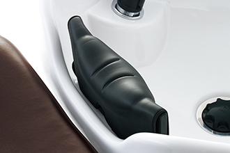 独自機構の採用で、チェアとボウルの間に約295mmの空間を確保。これによりスタッフがチェアとボウルの間に立つことができ、後方アプローチでの施術が可能になりました。肩マッサージや薬剤塗布など、シャンプーブースで行うサービスの幅が拡がります。