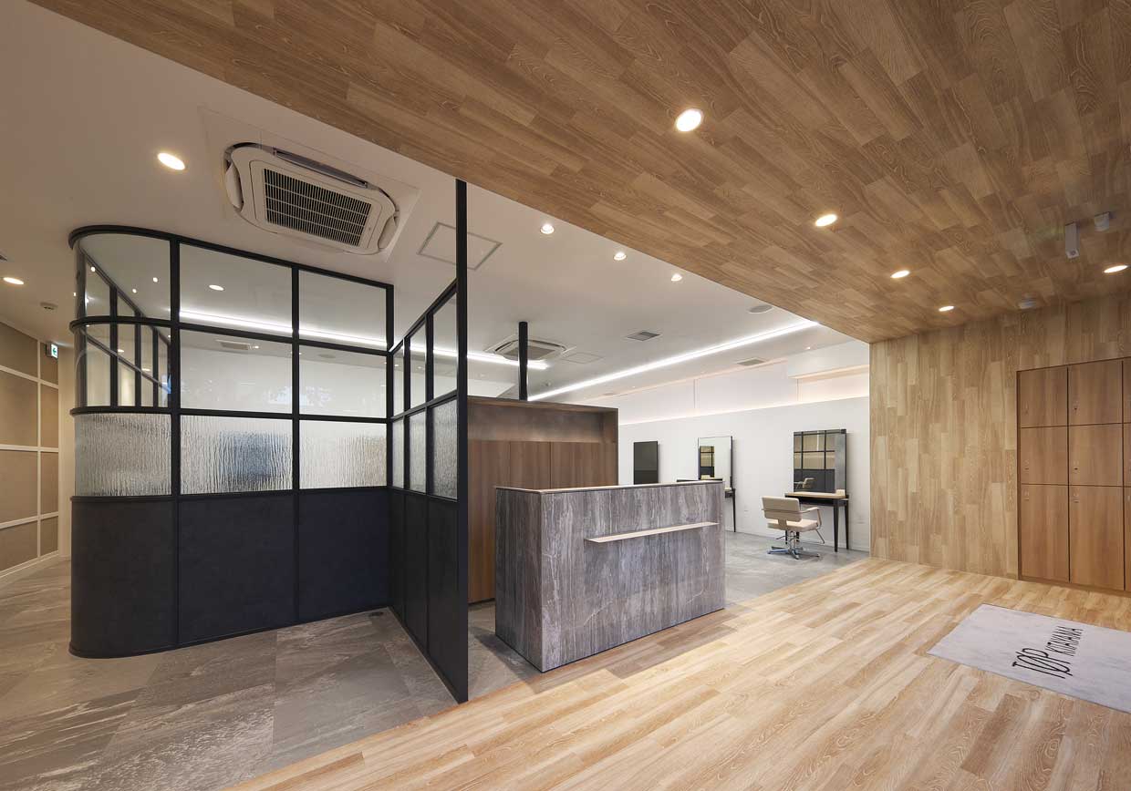 ヘアサロンだけでなくウェディングサロンも併設されているため、落ち着きと高級感のある上質な空間作りを目指した。スタイリングスペースと、シャンプー/プライベートスペースの明るさに差をつけることで、自然とON/OFFの気持ちが切り替えられるような、ライティングによる雰囲気の差別化を演出した。