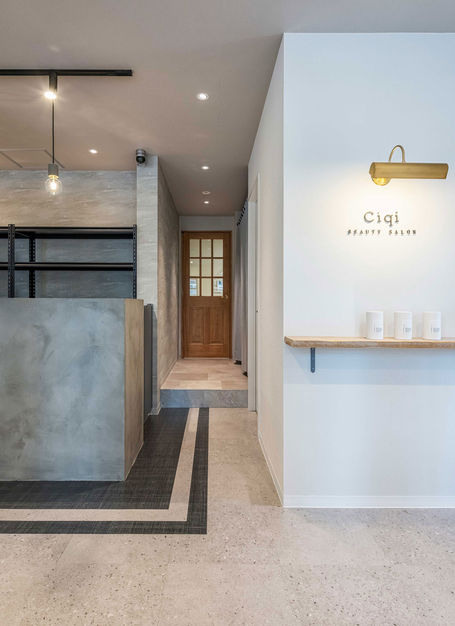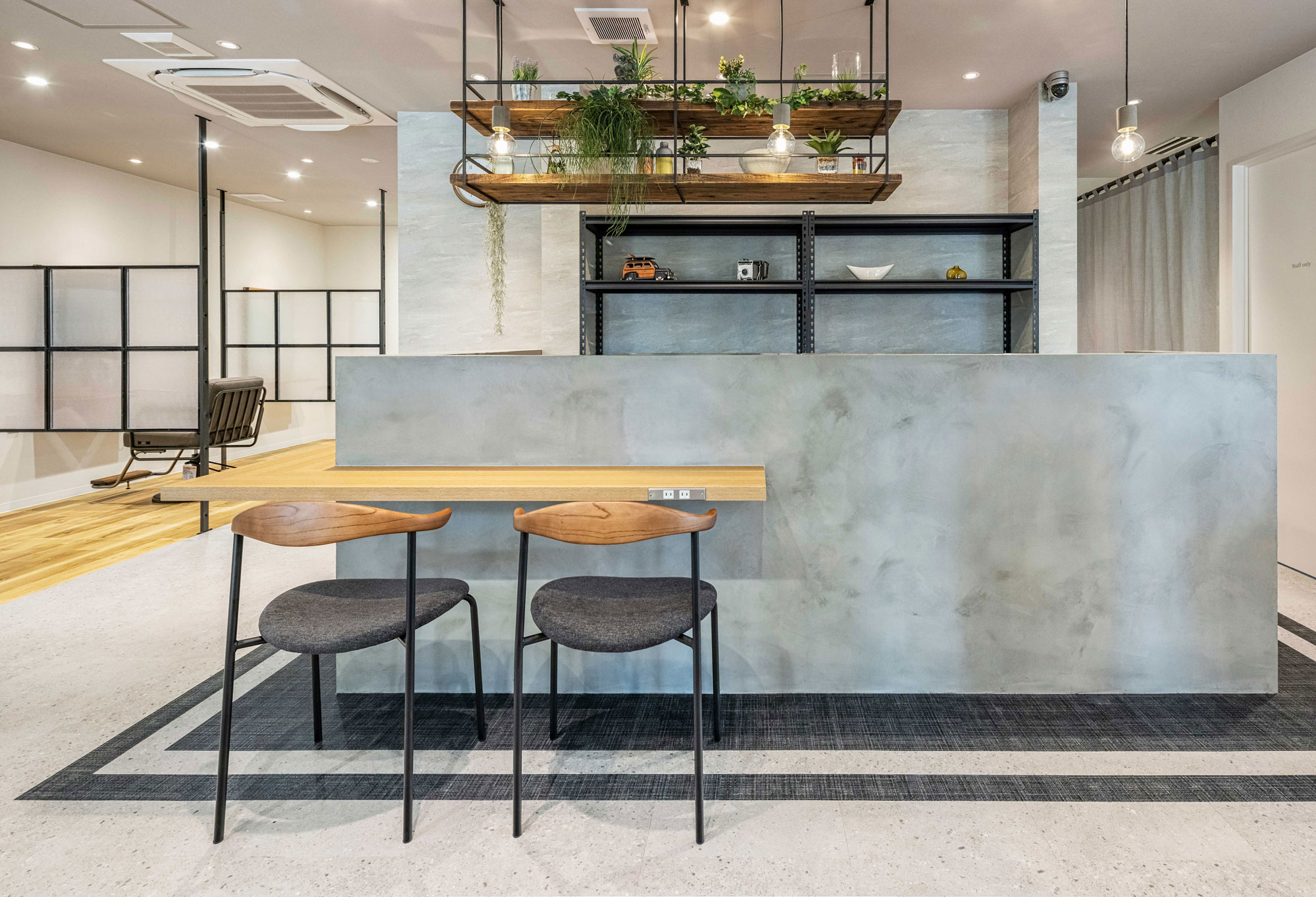 水戸エリアで4店舗展開するサロンのつくば出店計画。新規顧客獲得をしながらつくばエリアに定着することを目標に、地域密着型のサロンづくりを目指した。男性も女性も、若い方も子育て世代も、様々な悩みや状況に対応すべく個室・半個室のゾーニングとした。店舗の中心にはスタッフが準備で滞在する消毒コーナーと受付があり、動線を簡素化しながら常に全体に目が行き届くようになっている。そこを囲むようにコールドスペースを設置し、カフェのようなデザインとすることで寛げるような設計とした。様々なユーザーに寄り添うお店づくりをすることで、地域の拠り所となるサードプレイスな美容室となってほしい。